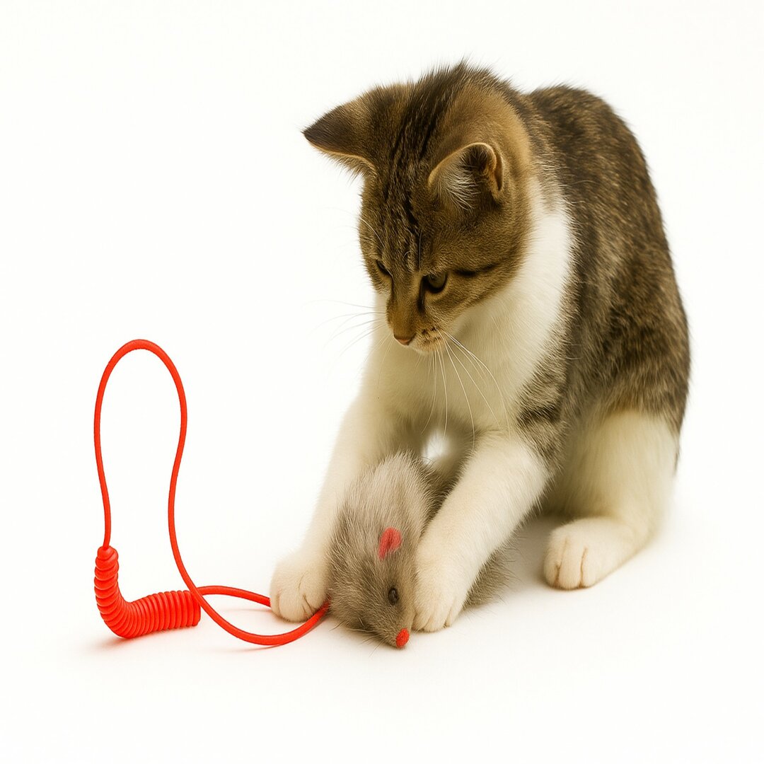 Kattenspeelgoed in de vorm van een echt lijkende muis aan elastisch koord.
