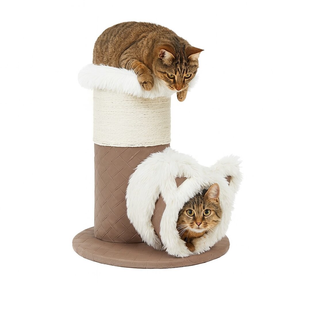- Nobleza Kattenmeubel cilinder met holletje en ligplaats - Wit fluffy - 54 cm