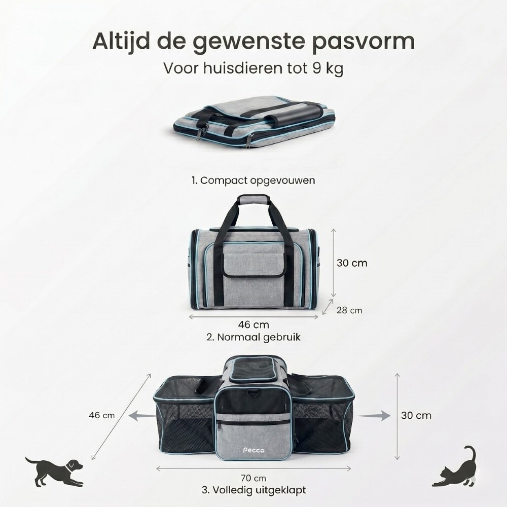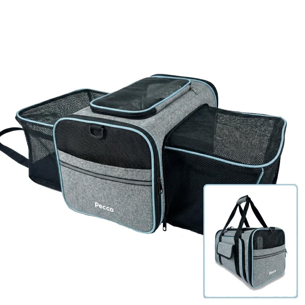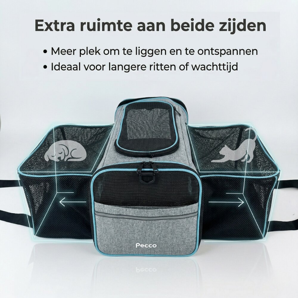- Pecco Dubbel uitbreidbare draagtas voor hond en kat tot 9 kg - Grijs