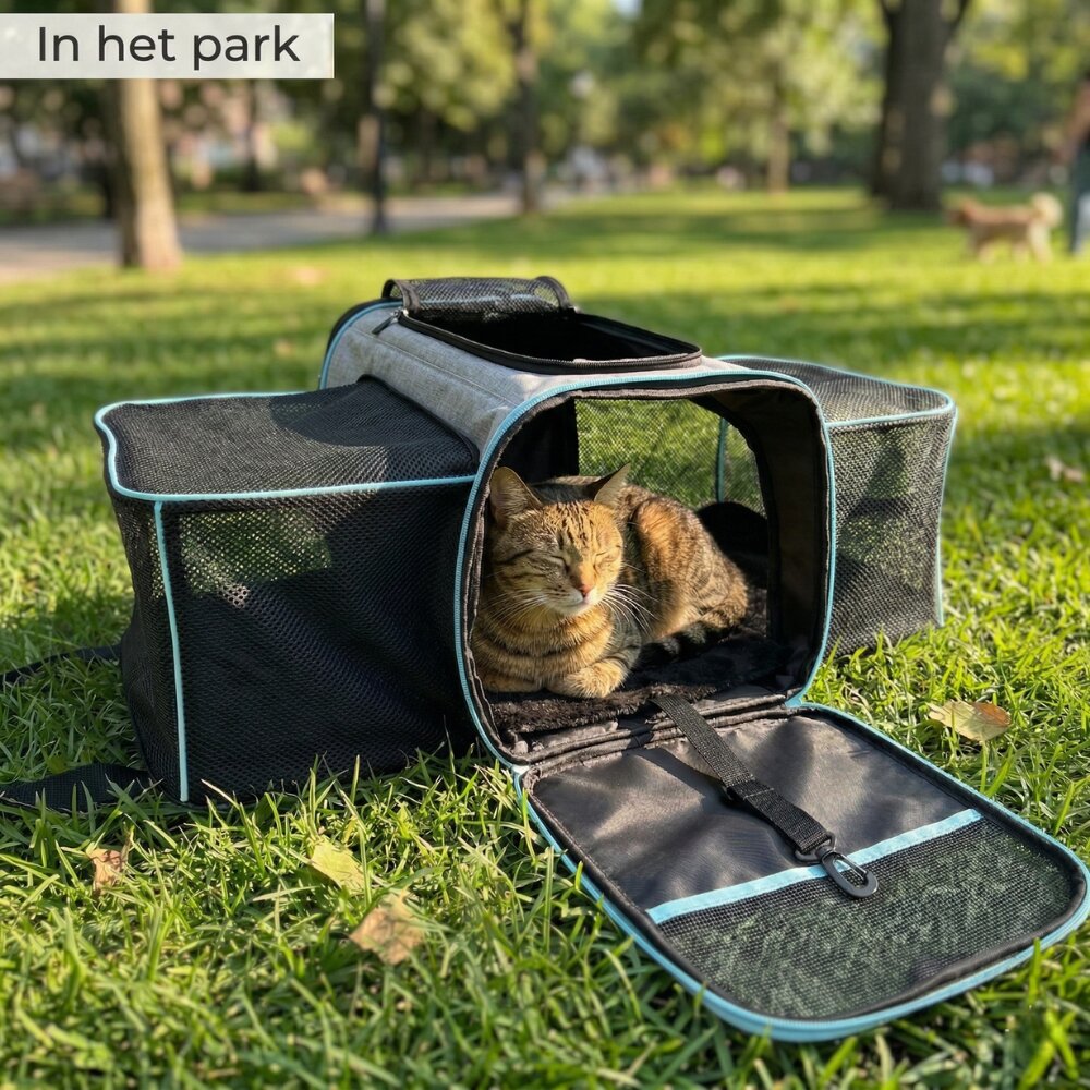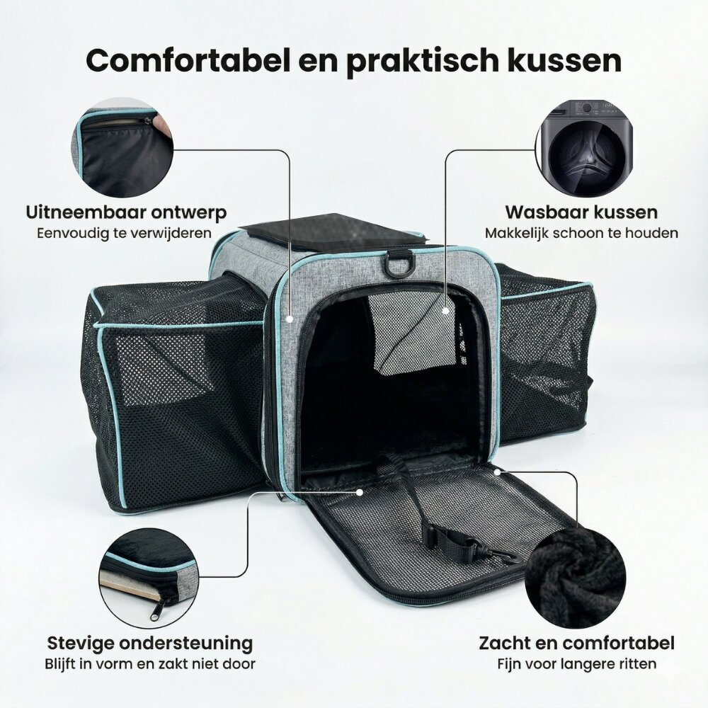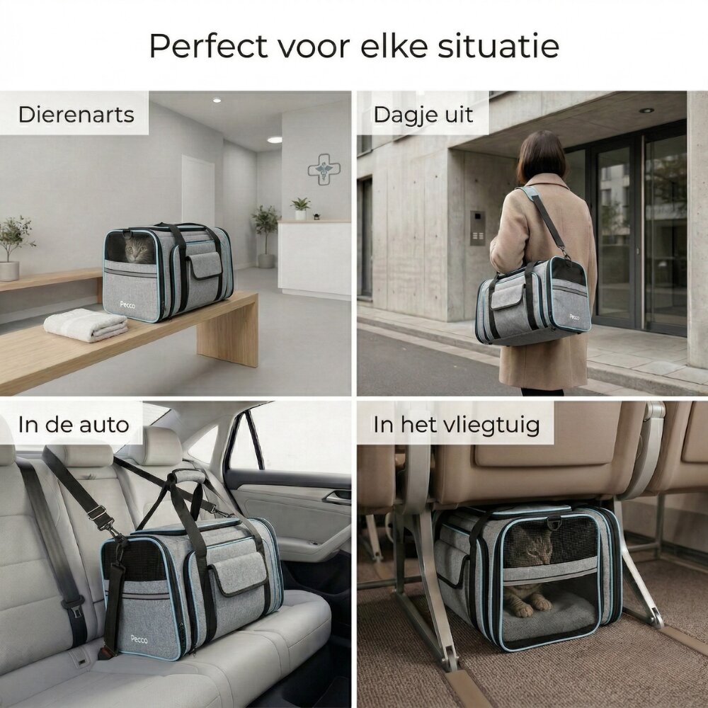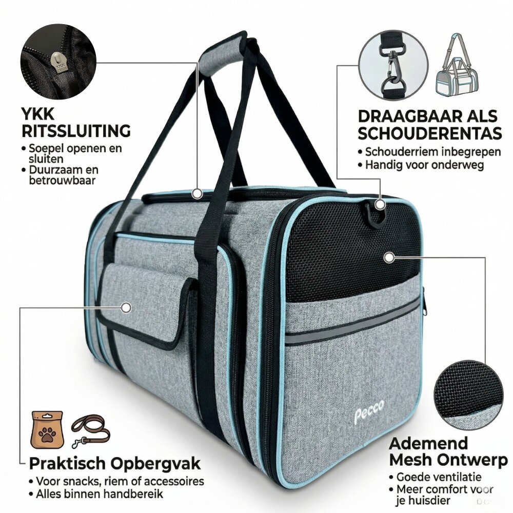 - Pecco Dubbel uitbreidbare draagtas voor hond en kat tot 9 kg - Grijs