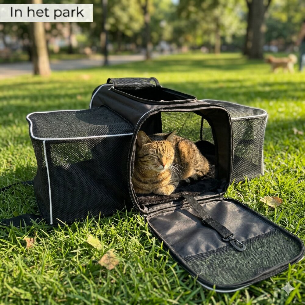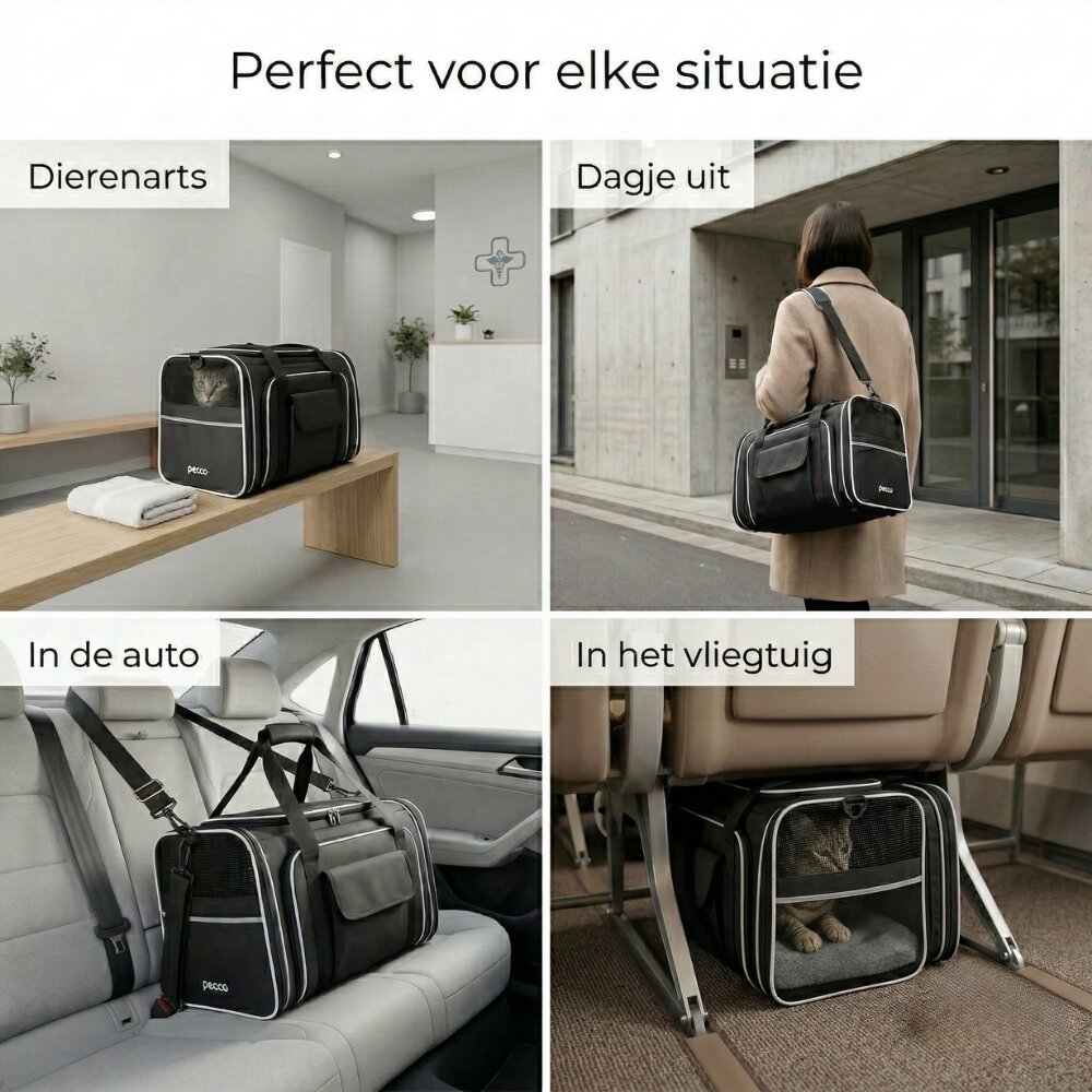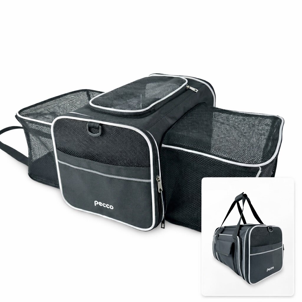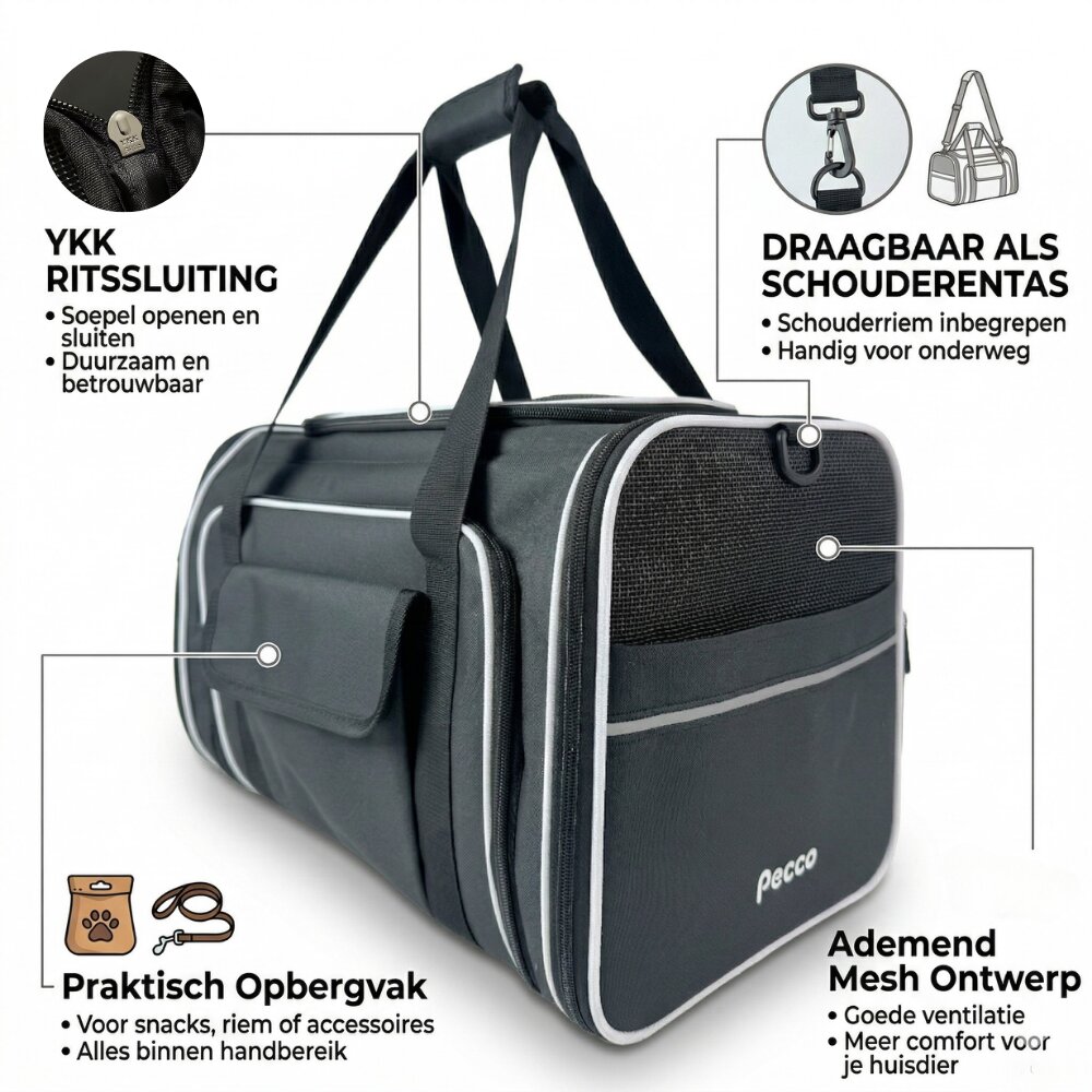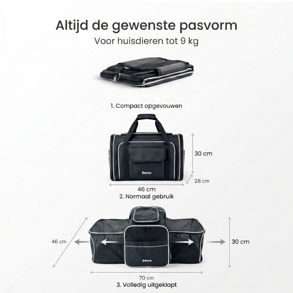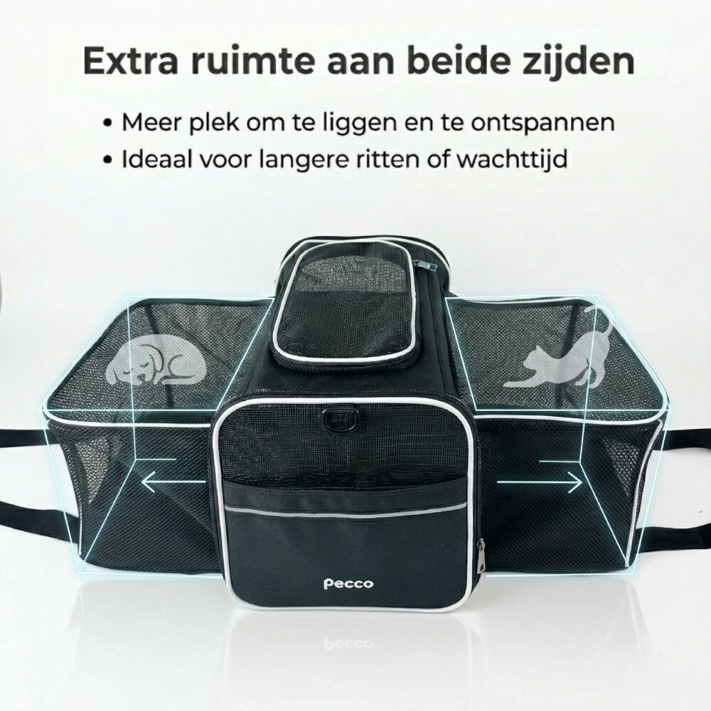 - Pecco Dubbel uitbreidbare draagtas voor hond en kat tot 9 kg - Zwart