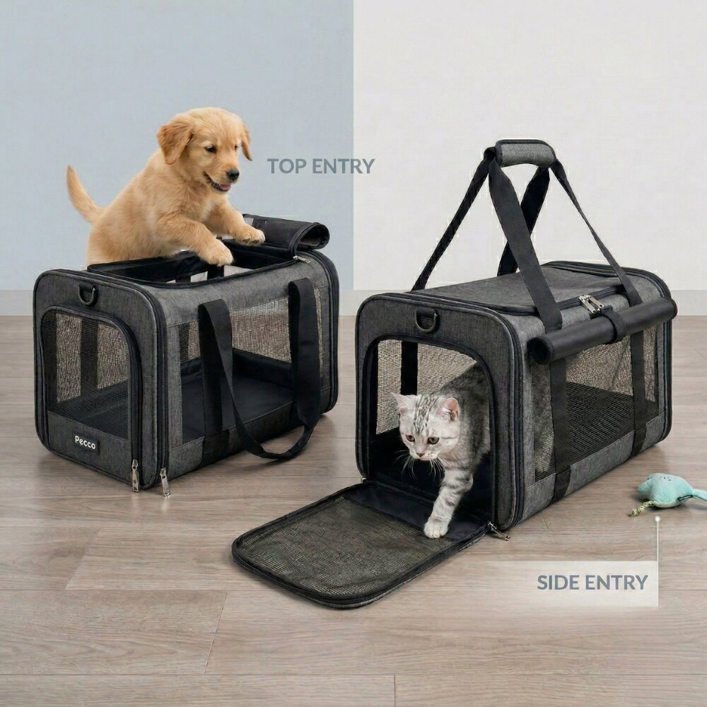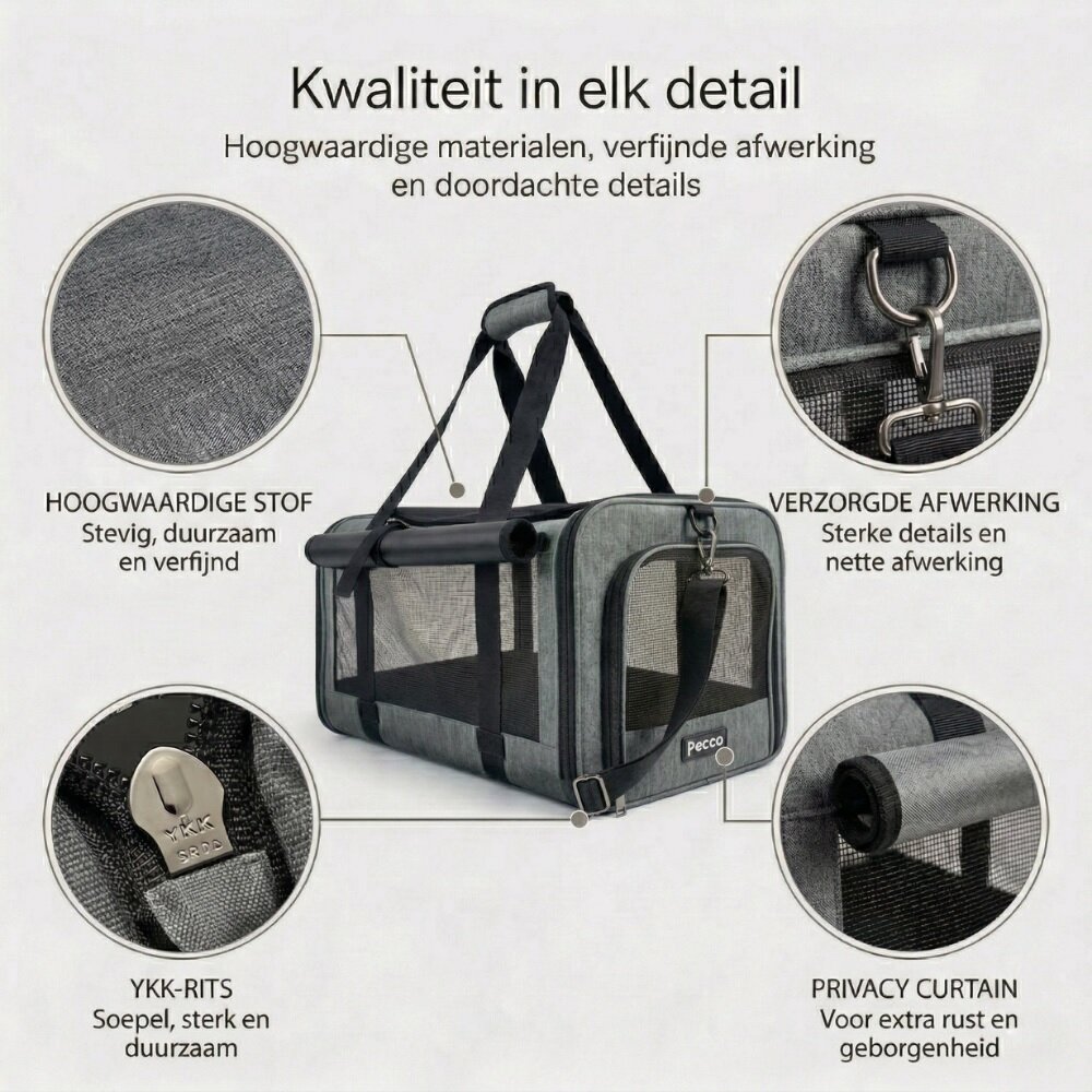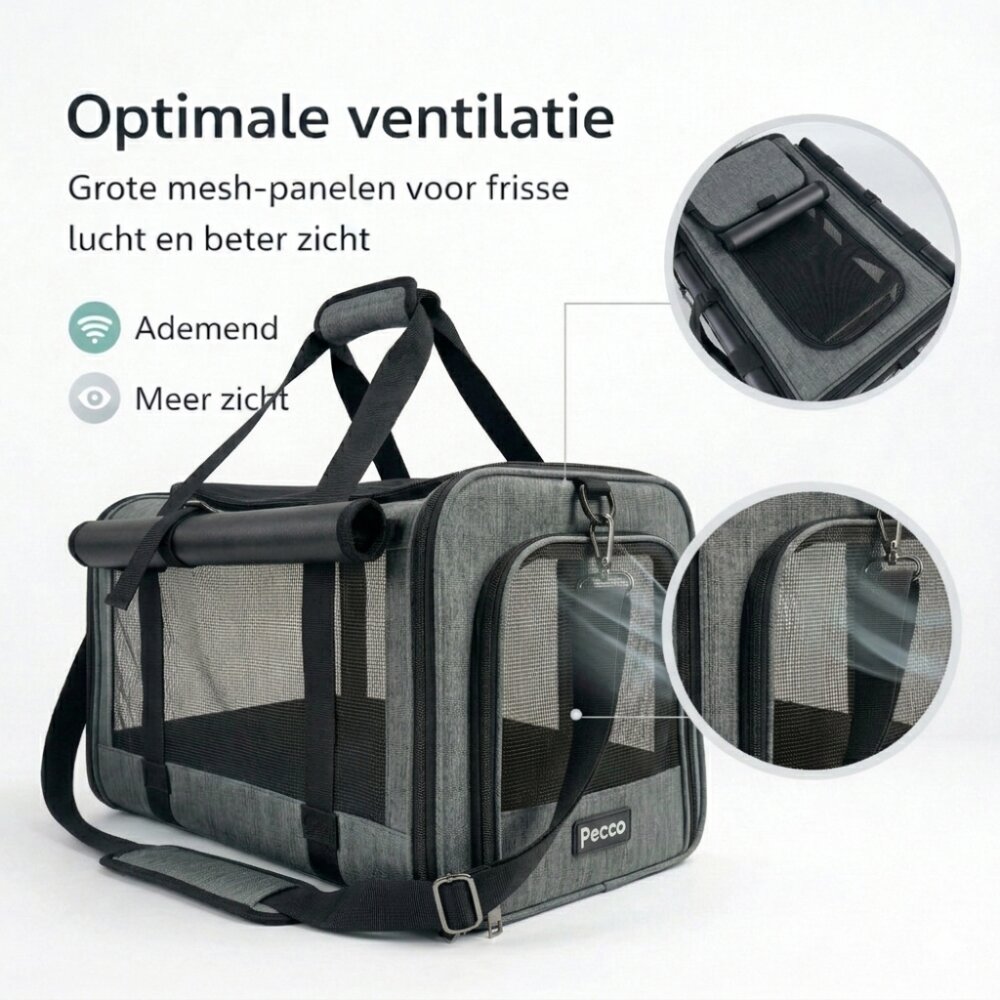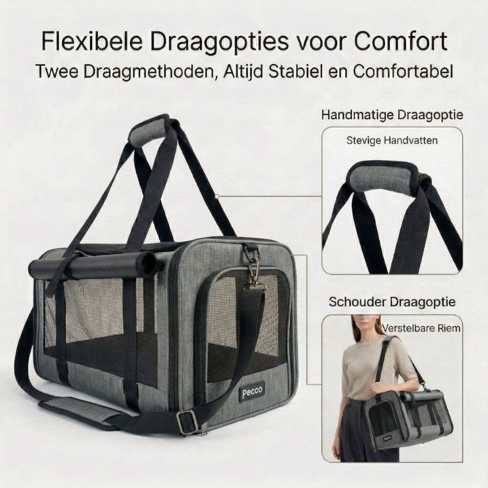 - Pecco luxe draagtas voor hond en kat tot 9 kg - Grijs - 48x30x30 cm
