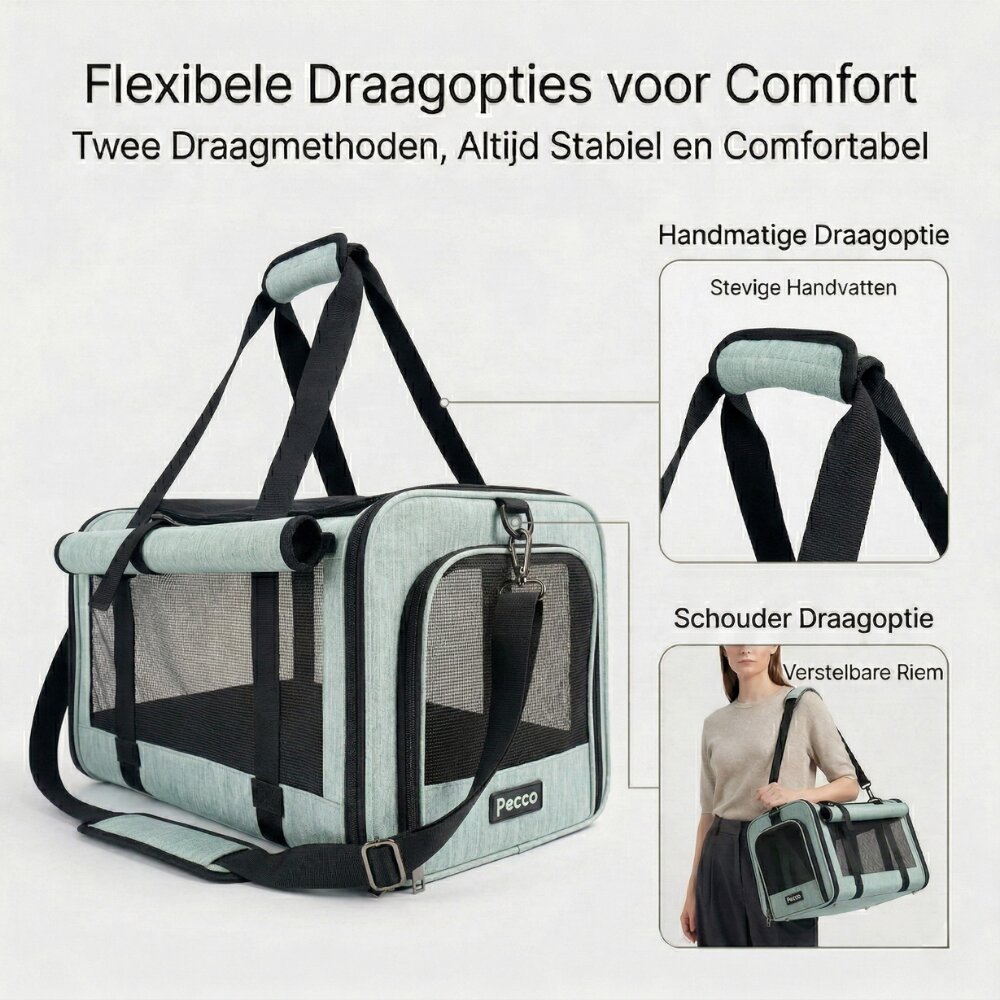 - Pecco luxe draagtas voor hond en kat tot 9 kg - Groen - 48x30x30 cm