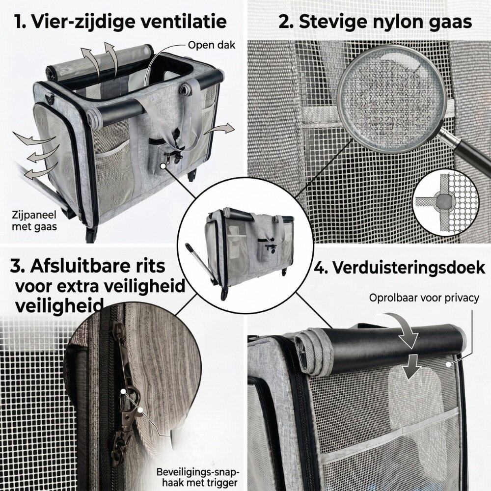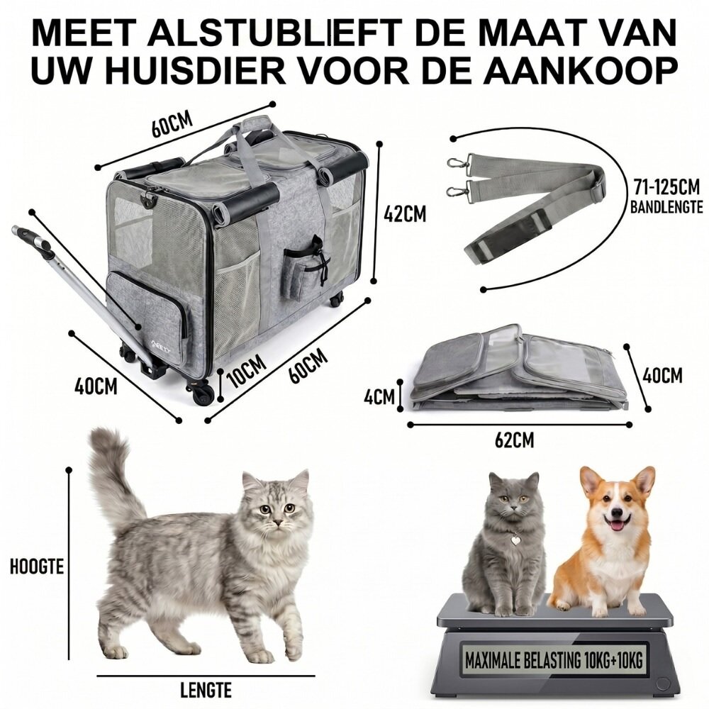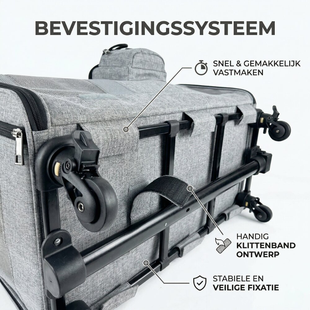 - Pecco Reisbench met trolley voor hond en kat - Grijs