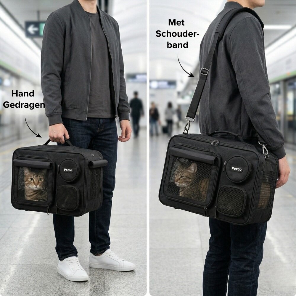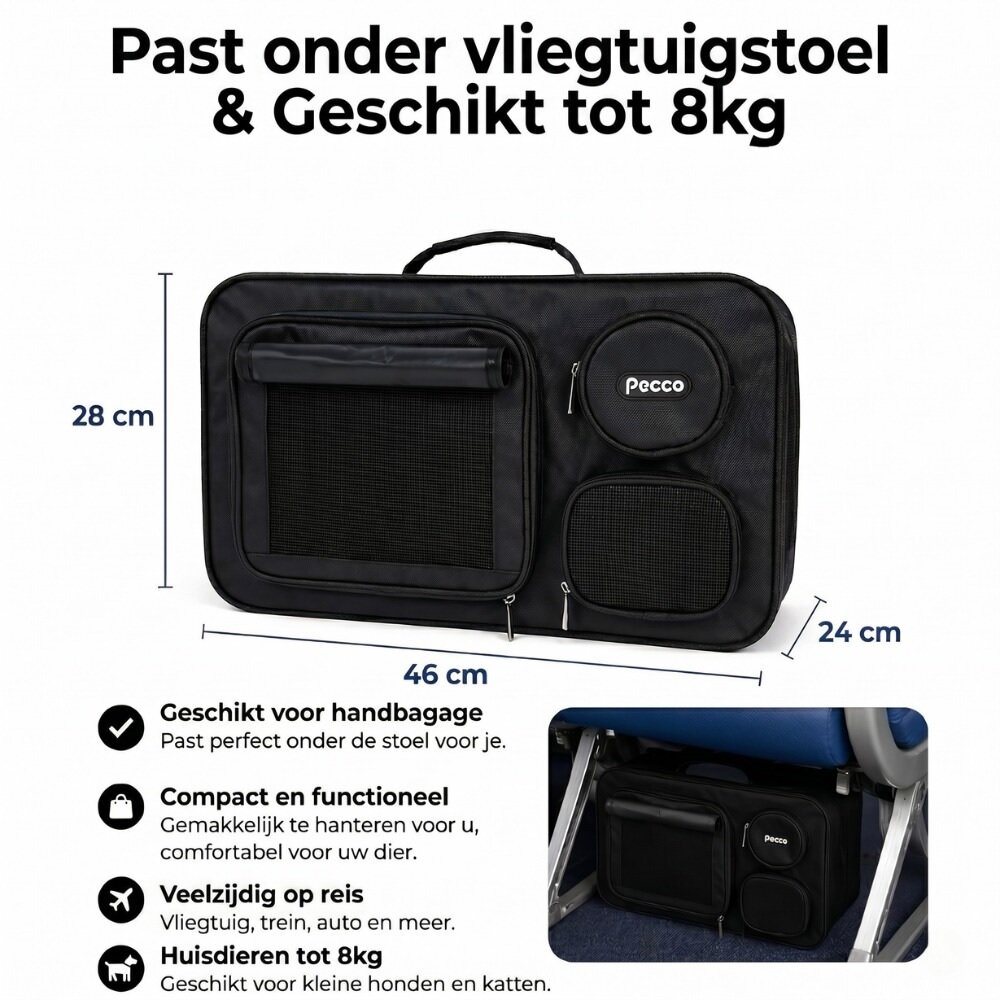 - Pecco Reistas voor hondje en kat tot 8 kg - Luchttransport - Zwart
